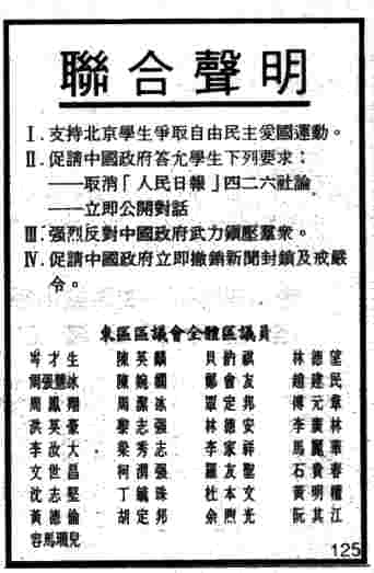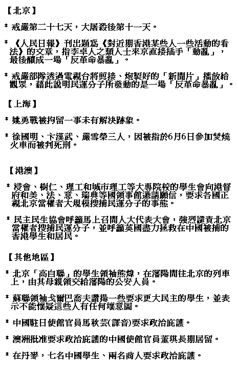 每天報紙的頭板新聞 ( 一九八九年 四月十六 至 六月廿二日 )