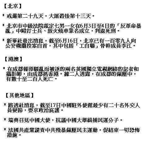 每天報紙的頭板新聞 ( 一九八九年 四月十六 至 六月廿二日 )