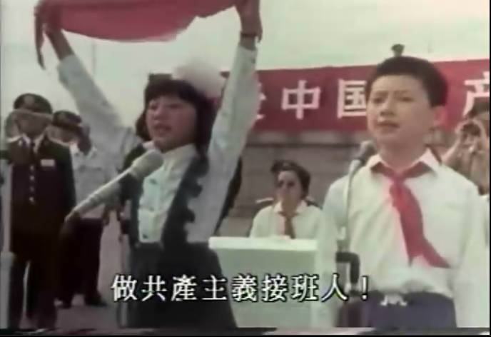 他们当时呼的口号是:"敬爱的革命烈士们,安息吧!少先队员会记住您,人民会记住您,祖国会记住您.让我们用光辉的红领巾保证:热爱中国共产党!(底下小盆友重复~)热爱社会主义祖国!(小盆友重复)热爱中国人民解放軍!(小盆友再重复)做共产主义接班人!(小盆友最后重复)