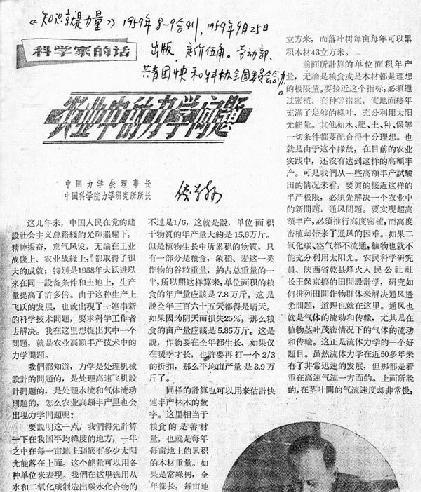 钱学森:农业中的力学问题--亩产万斤不是问题