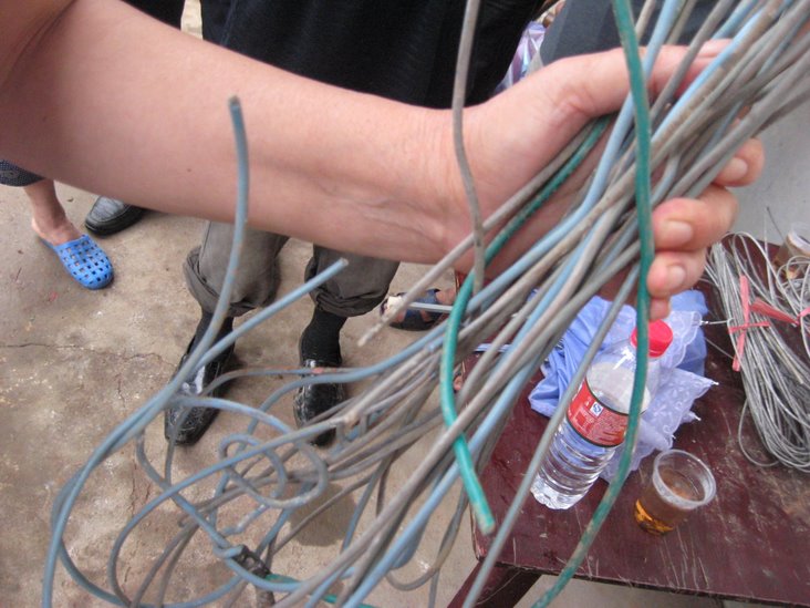 这位老奶奶手中拿的没有表皮的斑斑驳驳的线就是当时弄点整改时供电部门打算给老奶奶做入户线的,在老奶奶的强烈要求下才换下来的,老奶奶虽然没读过书,可是和起供电部门的专业电工对比的话,那可是相当有知识和见地呀!