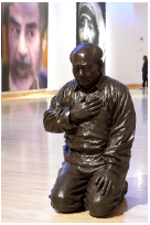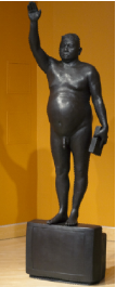 作品上一个被女性化的前中国共产党领袖毛泽东的小塑像,站立在前苏联领袖列宁的大比例半身头像上。