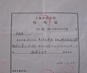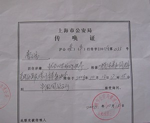 这次上海公安当局传唤时最感兴趣的问题就是:“你怎么知道的?谁通知你去的?喊过口号吗?喊过什么口号?拉过横幅没有?身穿杨佳广告衫是哪来的,是什么地方印刷的?”等一些问题进行追查。”
