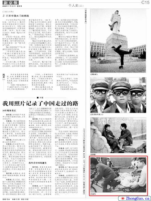 《新京报》今天用C12、C13和C15三个版面,报道了刘香成的“个人史”,其中还有对刘的专访,报道的总标题是“刘香成——走遍世界看中国”(“刘香成:思想决定了你怎么拍照”)。这组报道是《新京报》“改革开放30年见证”专题报道的第16期。