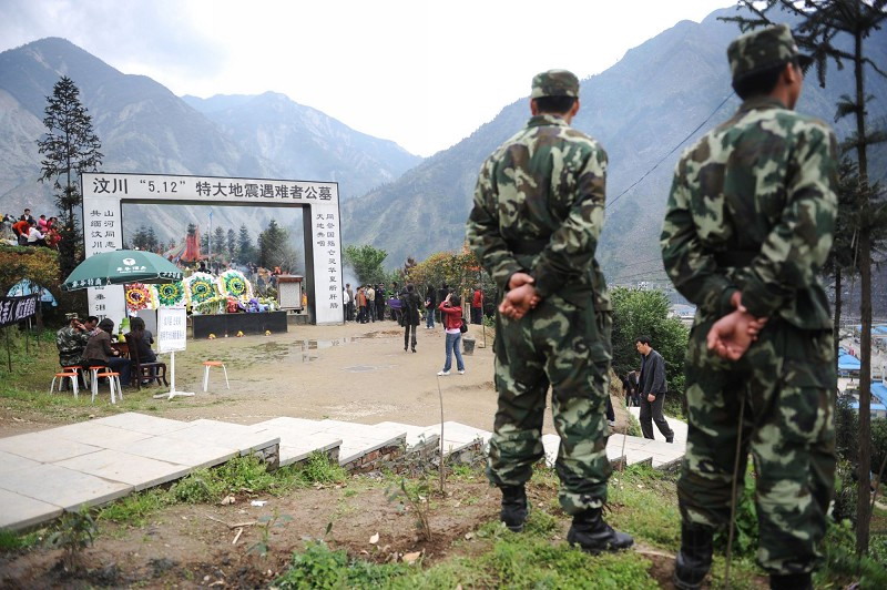 部份在川震中痛失子女的家长,因曾上访或接受海外媒体采访而遭中共报复,在清明节当天被带走,即使获准悼念孩子的父母,也须在严密监控下祭拜。(AFP)