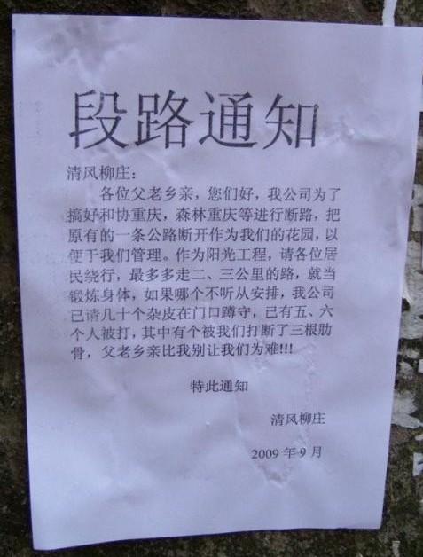 你的通知有几处错误。 1、清风柳庄给清风柳庄下通知? 2、没盖公章。 3、时间不准确。 4、格式不正确。写通知的人文化也太底了吧。