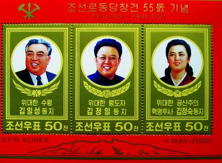 朝鲜“三位伟人”纪念邮票——金日成、金正日、金正淑(注:金正日他妈