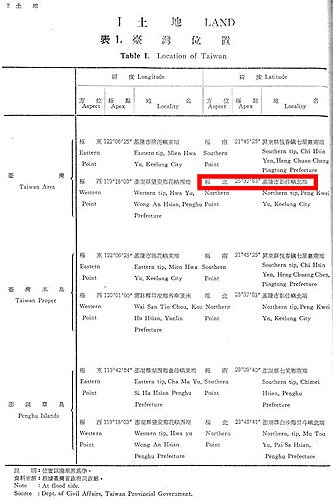 1971年出版的第三十期《台湾省统计要览》标示彭佳屿是台湾的最北端。