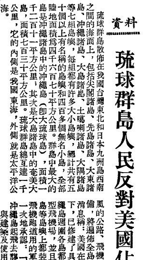 人民日报1953年1月8日《琉球群岛人民反对美国占领的斗争》一文中明确写到了琉球群岛包括尖阁列岛。