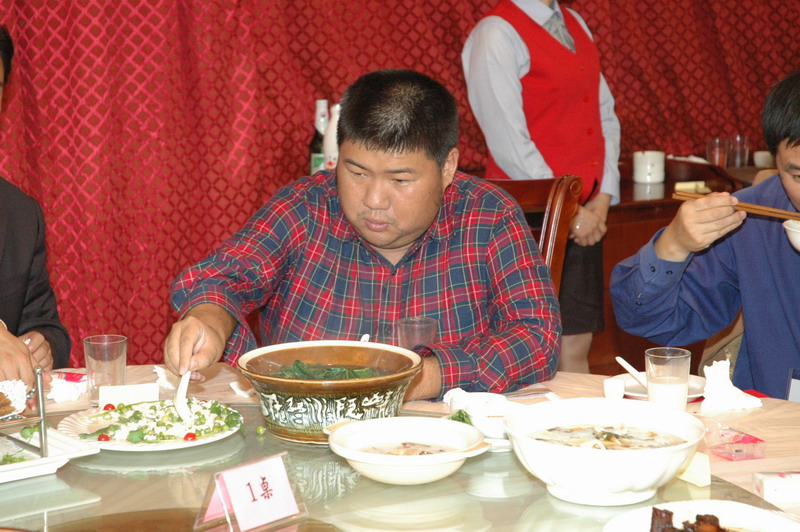 倒,此人左手里应该还拿有一个小碗,被前面的菜盆挡住了,就以此来误导观众,此人用的碗都是这么大。。。。。。
