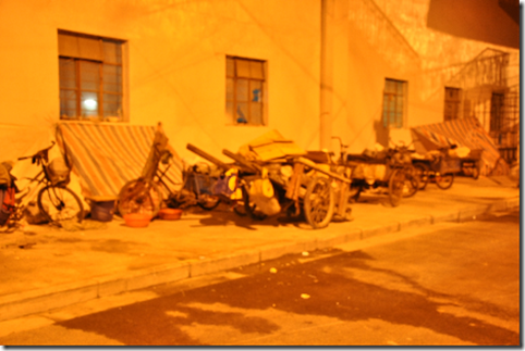 他们说,城管(他们称为“黑帽”)差不多两三天就会来一次,每一次来都要赶他们走。起先, “黑帽”看到他们的被子一类的东西就会抢走,后来他们都有经验了,白天会把被褥等私人物品藏起来,让城管发现不了,等到晚上要睡觉时再拿出来。