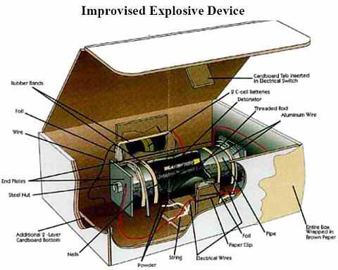 IED制材可能是商用、军用、自制、军方炮弹或者部分炮弹组成。低成本、不易侦测、材料取得容易是其流行的主要原因。IED引爆方式高达90多种,其作用类似诡雷,令人防不慎防,措手不及。伊拉克战争以来,伊境内武装组织使用的简易爆炸装置对驻伊美军造成了重大伤亡。美国特别担心,IED使用会从伊拉克、阿富汗战场,转移到美国国内,那将是国土安全的一场恶梦。