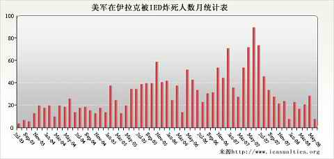 美军在伊拉克被IED炸死人数月统计表