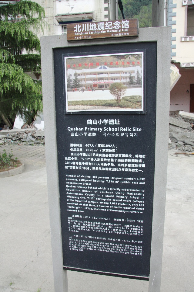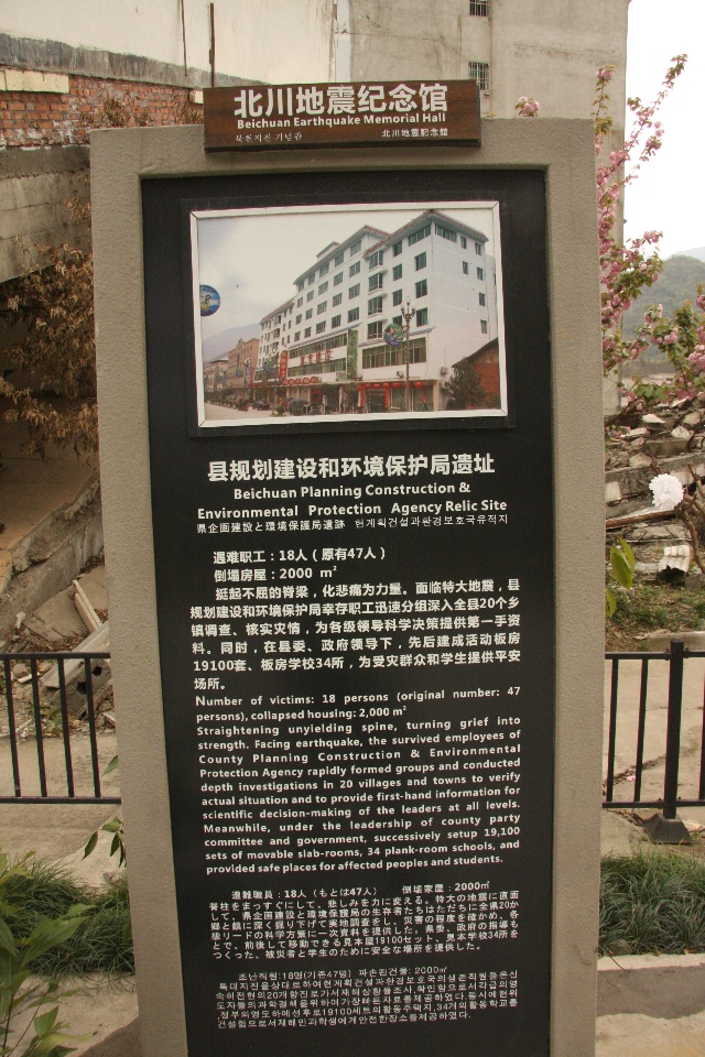 在北川,一些重要的或保存较为完整的遗址旁边,都会立有一个说明性的铭牌。下图即是对上图的说明,但这个说明太简单了。