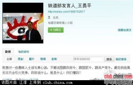 铁道部发言人王勇平被删内容 不要试图跟政府 国家 共产党斗