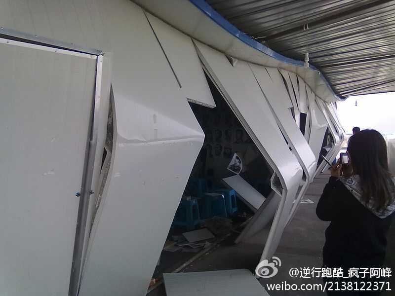 库区办公楼,顶都被揭了,不敢想像