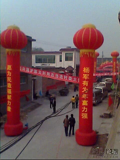 2008年10月30日,河南省沁阳市于台村举行村委会换届。由于候选人多,他们各施其招,各展奇才,弄得选举就像过节一样热闹,刚刚走进村口,便被浓浓的选举氛围所吸引,铺天盖地的宣传单,一座又一座的彩门桥,一条又一条的宣传标语,锣鼓洋号,礼仪小姐,哇,简直比娶媳妇还热闹。呵呵,你们见过选举的,估计没见过这么选举的。我用手机记录了一些场景,和大家分享,图像有些不清,请见谅。