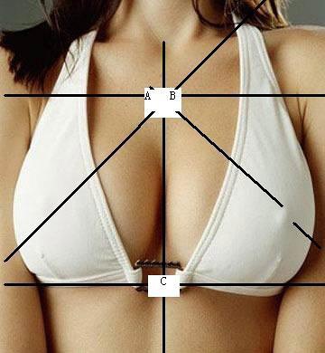 这是一张中国标准胸图片,上面有A,B,C点,C乃黄金分割点,。