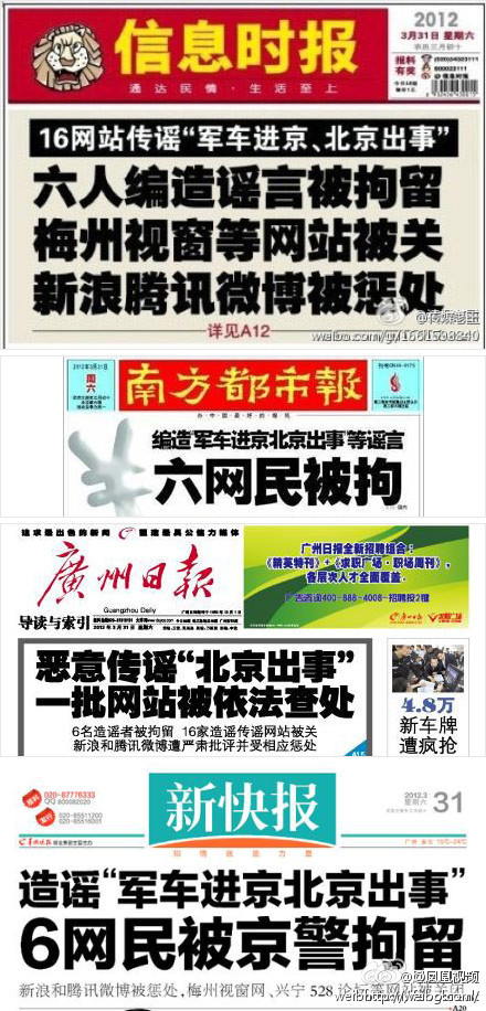 近日,一些不法分子在互联网上无端编造、恶意传播所谓“军车进京、北京出事”等谣言。少数网站违反国家相关法律法规,疏于管理,致使网上谣言传播,造成恶劣社会影响。根据《全国人民代表大会常务委员会关于维护互联网安全的决定》、《互联网信息服务管理办法》、《互联网新闻信息服务管理规定》等法律法规,国家互联网信息办公室责成有关地方网络管理部门进行严肃查处,电信管理部门依法对梅州视窗网、兴宁528论坛、东阳热线、E京网等16家造谣、传谣,疏于管理造成恶劣社会影响的网站予以关闭。