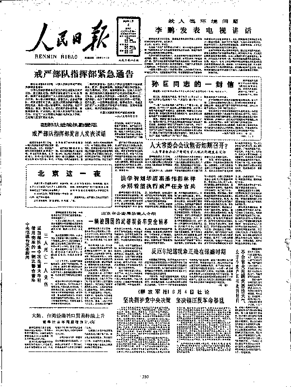 Everyday newspapers, front page ( April 16, 1989 to June 22, 1989 )