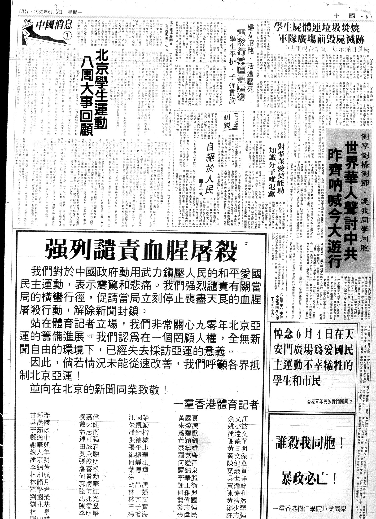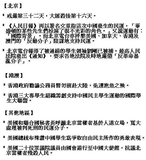 每天報紙的頭板新聞 ( 一九八九年 四月十六 至 六月廿二日 )