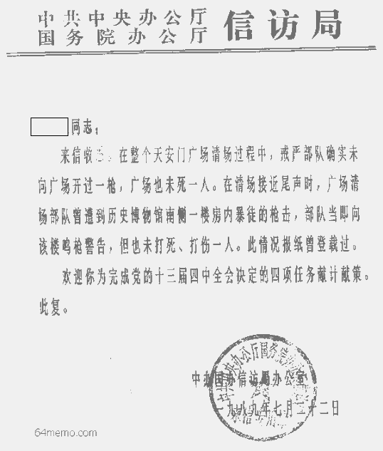 蒋彦永:《关于为89年六四学生爱国运动正名的建议》及其附件