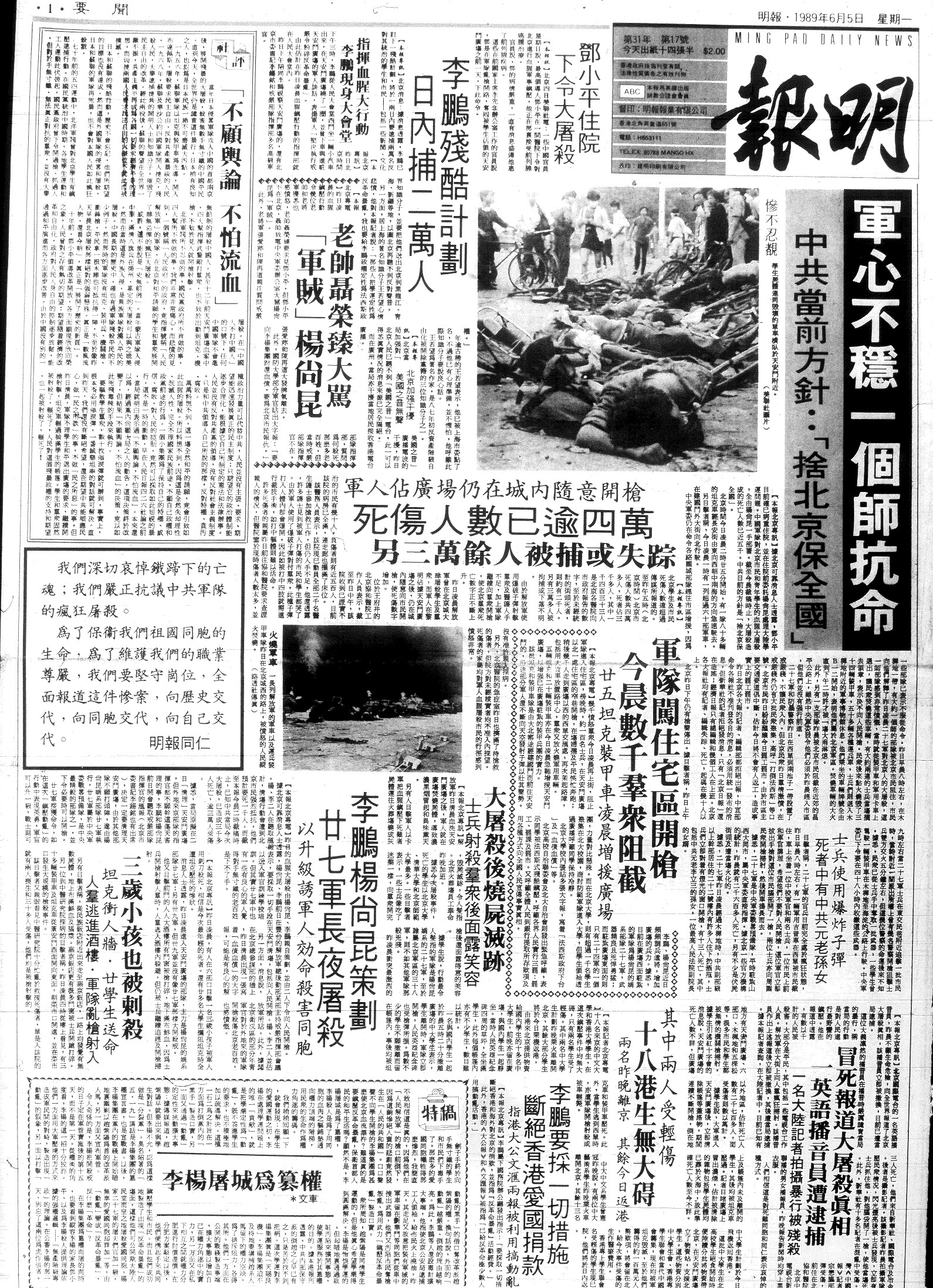 手段,包括動用槍械、出動坦克等等在內。後來發生的大量殺死殺傷無辜平民事