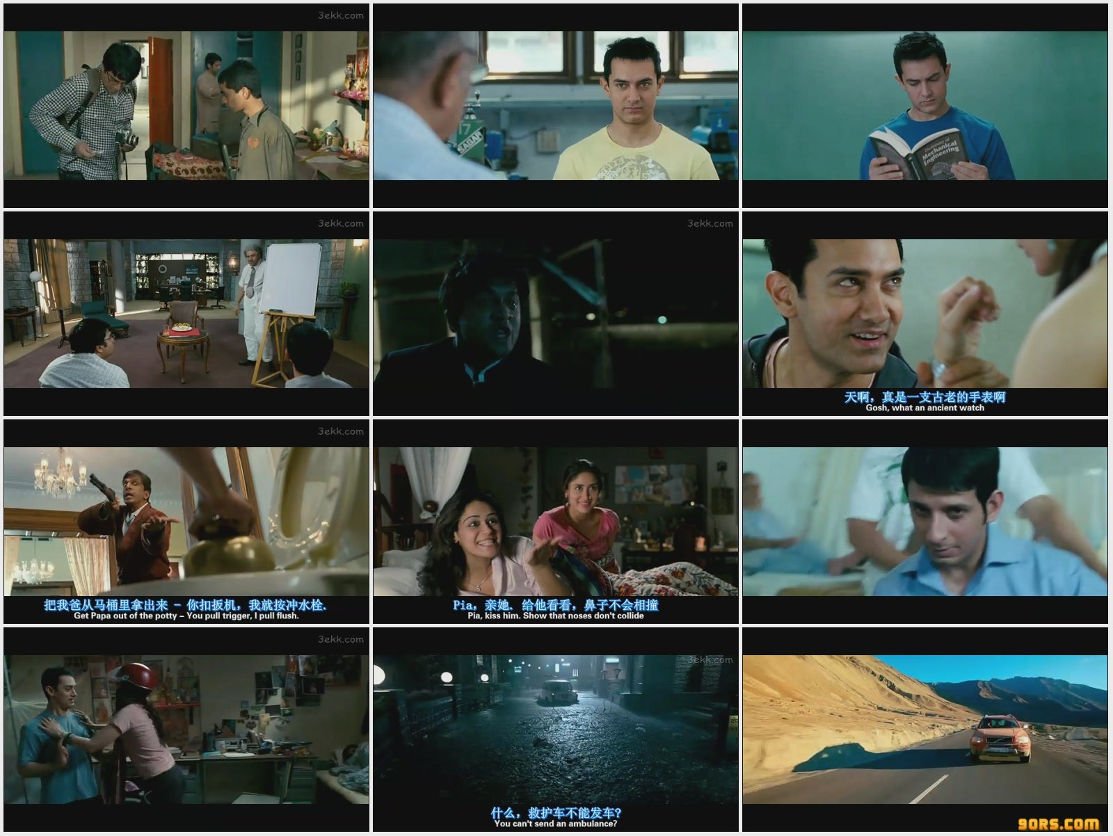 《三个白痴》,另有译名《三傻大闹宝莱坞》,2009年贺岁档在印度上映之后口碑不错,IMDB上8.1分。影片的主演之一,也就是扮演天才少年的阿尔米·汗,此时在印度正当红,他的加盟也是影片在本地票房大卖的主要原因。中国内地目前已经有不少他的粉丝,认为他样貌英俊,演技强大,集中了汤姆·汉克斯、吴彦祖、青年版憨豆的各种精髓。不熟悉的观众在了解他的年龄之后可能会下巴落地,因为在接拍这部电影,在其中饰演活蹦乱跳的大学生时,他已经是顶着44岁的“高龄”了。