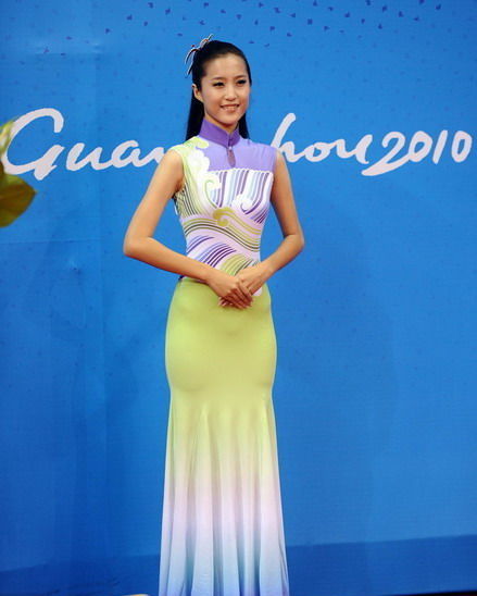 身着行云流水的礼仪小姐们,成为了本届亚运会上最靓丽的一道风景