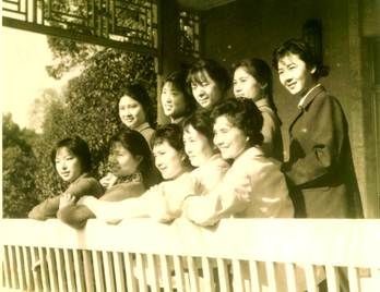 她說沒有和毛的照片,其他的都有。於是,她拿出一大盒照片,傾倒在沙發上,讓我看。大部份是黑白的老照片,而且尺寸小。我順便挑了幾張,她同意我去複製。如圖這張在中南海和張玉鳳等的合影,她在前排中間。似乎沒有孟錦雲。還有和一些老幹部的合影。