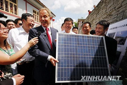 星岛环球网消息:应邀参加“生态文明贵阳会议”的英国前首相托尼·布莱尔与影视明星、“壹基金”发起人李连杰,22日来到贵阳市花溪区党武乡摆贡寨参观,并共同启动“太阳能LED照明千村计划”。摆贡寨是该计划的第一个示范村庄。