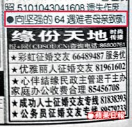 陳 雲 飛 因 兩 年 前 刊 登 了 一 則 小 廣 告 ( 紅 框 內 ) , 昨 日 再 被 拘 押 。