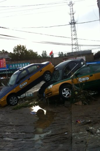 听说城关永安西里冲走一个小伙子,北关万宁冲走两个。长周路石楼道口还有很多车辆没有打捞,里面肯定还有受灾的人!周口店死的人更多!