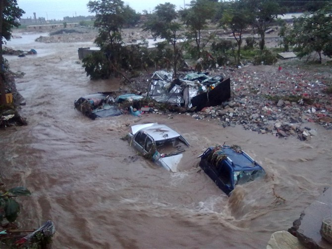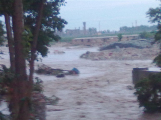 周口店大韩继铁道口 冲走一辆出租车 两辆三轮 只找到两具尸体 具体死多少没法知道