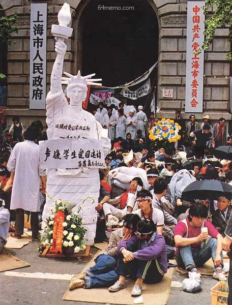 上海的絕食學生在市政府門前豎起一座自由女神像。.jpg (48.73 KB)