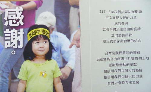 星岛环球网消息:民进党文宣部人员在517大游行当天拍到一位长相清秀、甜美可爱的小女孩,有意将她列为“公投小天使”,将其可爱的模样制作各种文宣。