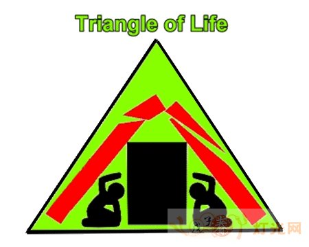 简单地说,当建筑物倒塌落在物体或家俱上的屋顶重力会撞击到这些物体,使得靠近它们的地方留下一个空间。这个空间就是被我称作的“救命三角”。物体越大,越坚固,它被挤压的余地就越小。而物体被挤压得越小,这个空间就越大,于是利用这个空间的人免于受伤的可能性就越大。