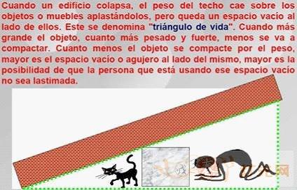 下次,你在电视里观看倒塌的建筑物时,数一数这些形成的“三角”。你会发现到处都有这些三角。在倒塌的建筑物里,这是最常见的形状。几乎到处都有。我培训Trujillo(人口约为75万人的地方)的消防部门,教导人们如何求生,如何照顾他们的家人,以及如何在地震中援救他人。