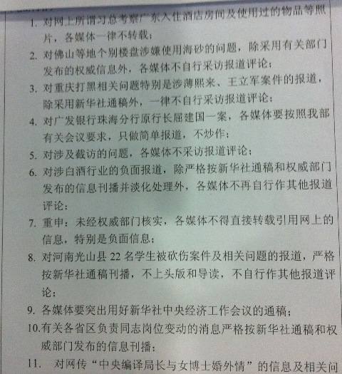 12月14-16日,广东省委宣传部通知内容,表明:除了重庆王立军事件,他还下令,对河南光山县22名小学生被砍伤,都不得自行报道,就连白酒含塑化剂,他都要求淡化处理!这小子来广东,目的只有一个,当新华社稿件推销员!