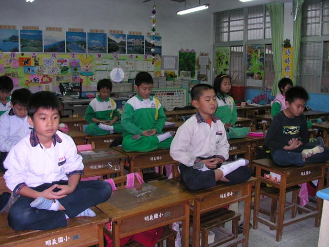 练法轮功的孩子们!