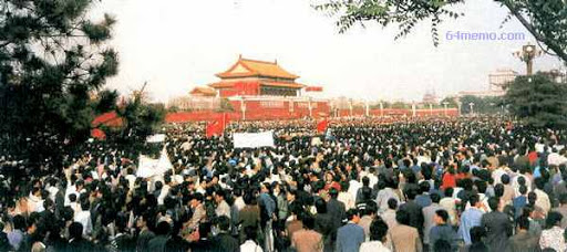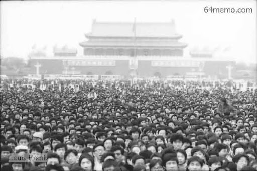 悼胡爭民主 1989年4月19日16時 天安門廣場上的人群和警察