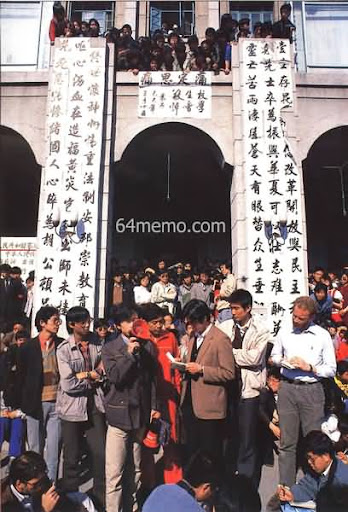 April 26th. The People’s Daily, the mouth piece of the communist party, published an editorial, entitled: “Must resolutely oppose any unrest”. This editorial is accusing the student movement as a planned conspiracy against the party as well as socialism. The April 26 editorial triggered a strong reaction within the student movement