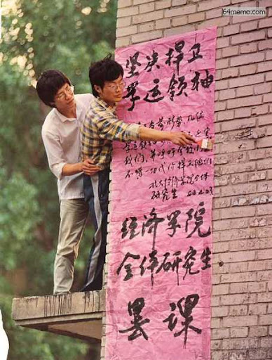April 23rd. Students put up a poster at Peking University announcing support for a class boycott being organized by student leaders at several universities.
