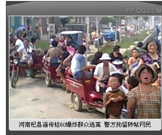 7月17日,河南开封杞县流传钴60将爆炸的谣言,许多群众逃离家乡,前往附近县市“避难”。当地政府紧急应对,采取各种方式辟谣。河南省委书记徐光春作出批示,副省长秦玉海赴杞县指挥。据当地媒体报道,绝大部分出走的群众已返乡,县城商铺也陆续开门,社会秩序趋于稳定。