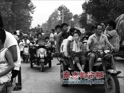 17日,杞县农民驾驶“奔马车”出走。