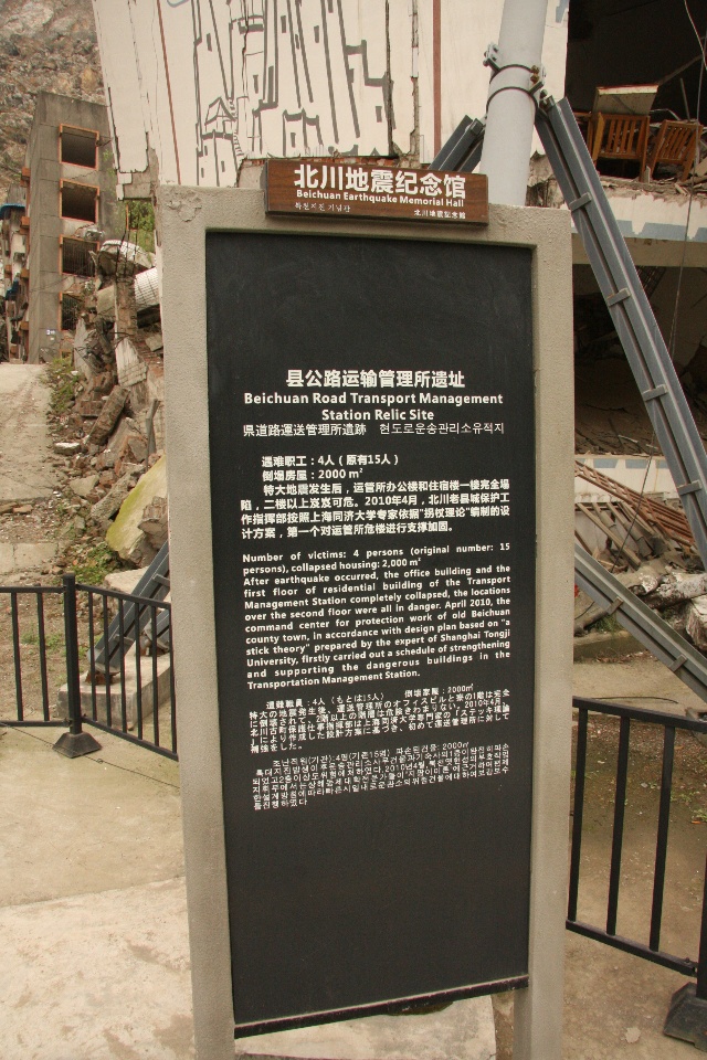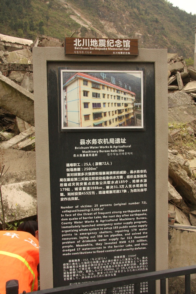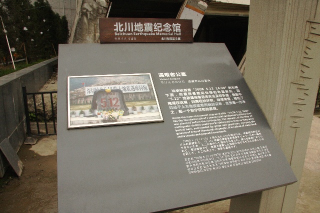 在北川,一些重要的或保存较为完整的遗址旁边,都会立有一个说明性的铭牌。下图即是对上图的说明,但这个说明太简单了。
