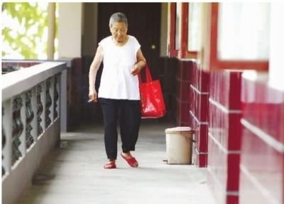长沙市郊的一所敬老院内,一位住在单间的老人起身下楼吃饭。记者 童迪 摄