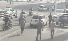红灯还没结束,奥拓车突然开进路口,向右打方向,冲向路口一名协警。这名协警往车子左边闪了一下,奥拓车也跟着向左打了方向,车尾还“漂移”了起来。最终,奥拓车撞上了协警。