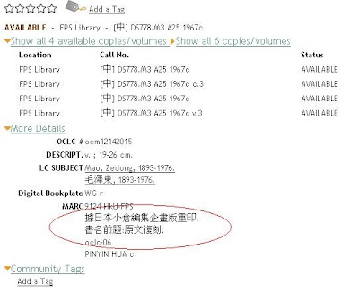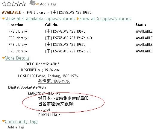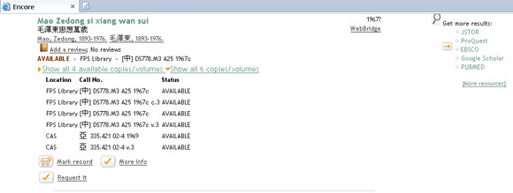 《毛泽东思想万岁》四卷(非国内版),在香港大学图书馆的位置及编号。