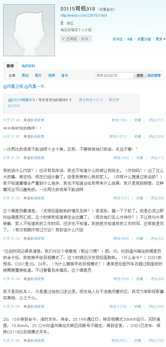 他说他不是D3115的司机,但是一直和司机保持联系。真正的司机目前被禁止和任何媒体接触。但是这位神秘人士发布了一些他和司机的快速谈话内容。